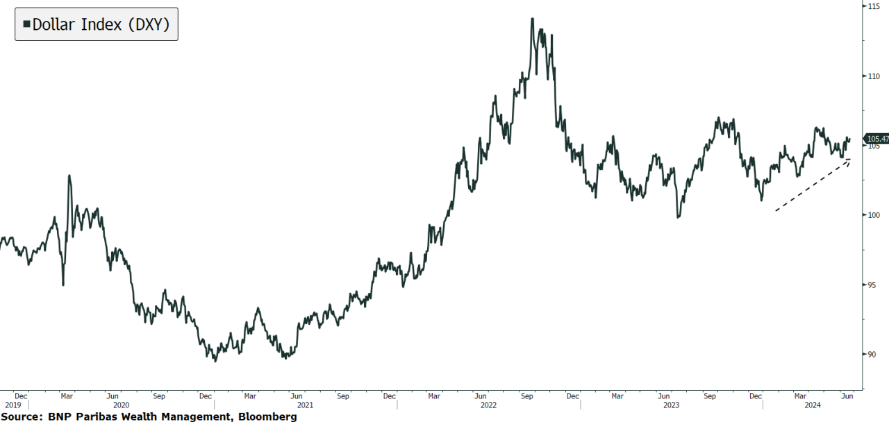 And in fact the rise of the US Dollar dominance may also be to some extent reflected by the strength of the Dollar Index, as illustrated below.